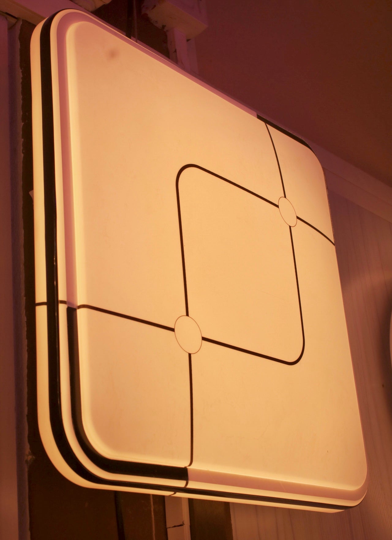 Square White Matte Ceiling with Black Diagonal Stripes Design